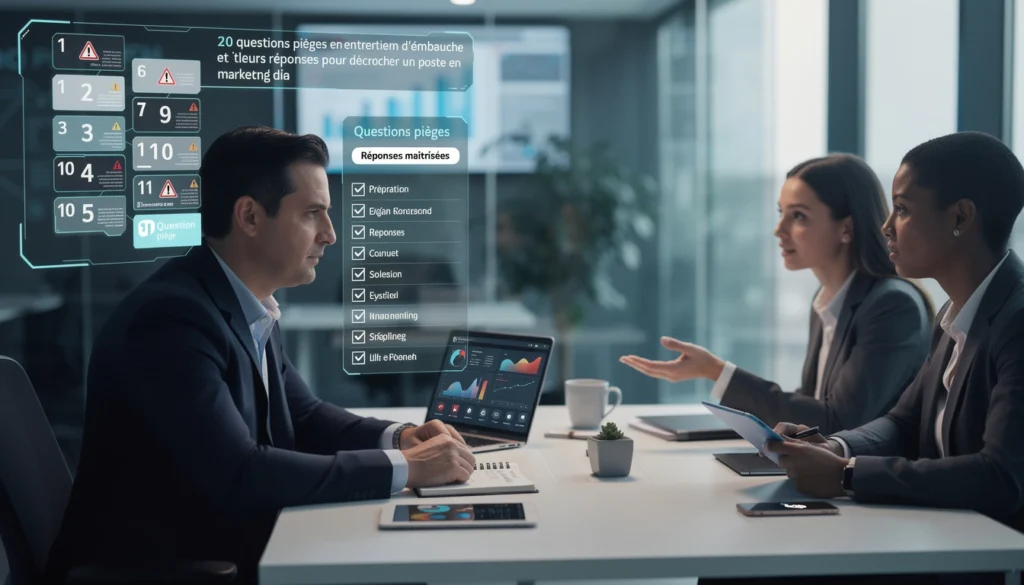 Préparez-vous à affronter les questions les plus délicates du monde du marketing digital. Nous allons décortiquer chaque question, vous expliquer pourquoi elle est posée, vous donner des conseils pour y répondre efficacement, et vous fournir un exemple de réponse structurée. Maîtriser ces questions pièges entretien marketing digital vous permettra de transformer l’entretien d’embauche en une opportunité de briller et de démontrer votre valeur unique. Découvrez les questions difficiles entretien marketing digital.